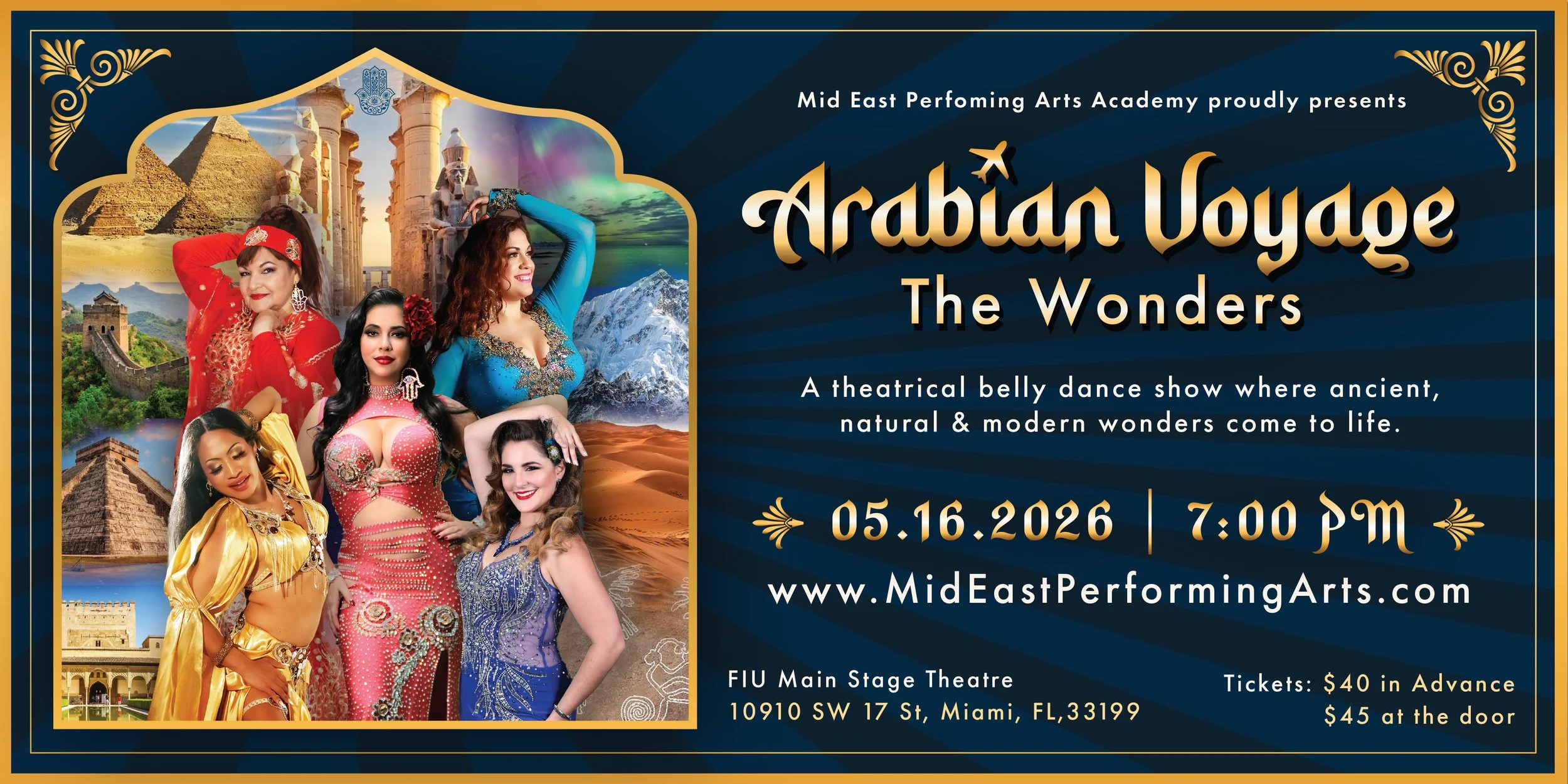 For almost 30 years, Mid East Performing Arts Academy has brought elegant and authentic Middle Eastern dance to South Florida. By providing sophisticated, professional, and award-winning instructors and performers, Mid East Performing Arts Academy has become synonymous with professionalism and quality. We pride ourselves in teaching dancers the most diverse Middle Eastern dance styles. Our school provides you with patient, fun, and challenging classes to push you to the next level, along with elegant and captivating performances year after year!